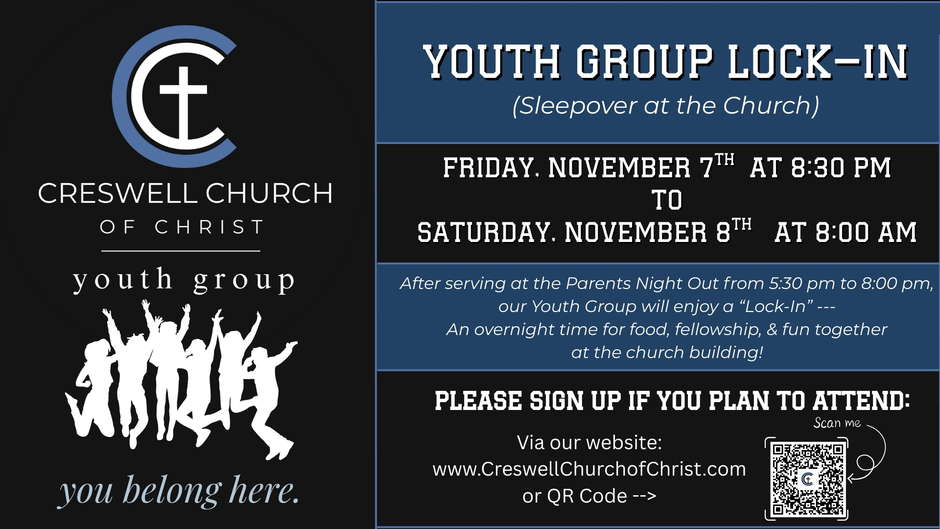Seriously. Every week at Creswell Church of Christ - Christians and non-Christians, seekers and skeptics, the fired-up and the burned-out - all come together to learn the ins and outs of Jesus’ great invitation into a new life.